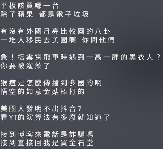 - 感謝 zake7749/Gossiping-Chinese-Corpus 在 Kaggle 提供有趣的資料集和開源程式碼